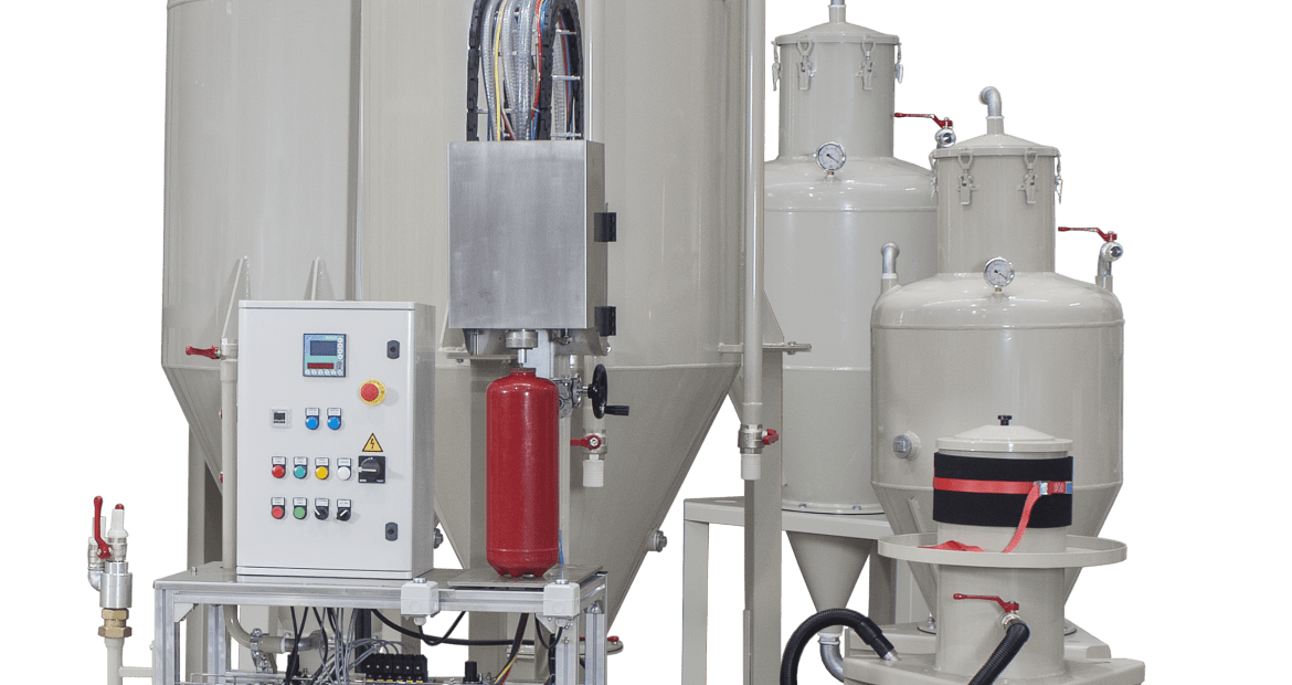 - N.1 tramoggia per il riempimento dei serbatoi di contenimento polvere, con filtro primario rompi-polvere e sistema di pulizia per eventuali sversamenti accidentali della polvere. Il riempimento avviene direttamente da big-bag, 1000kg in circa 5/10 min. con polveri fluide.